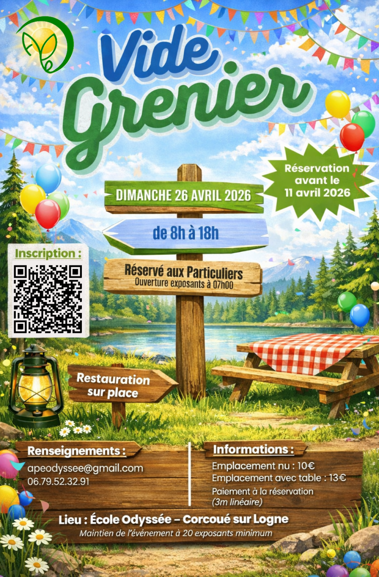 Retrouvez-nous le dimanche 26 avril 2026. Pratique : Le vide grenier c'est toujours le dernier dimanche d'avril !